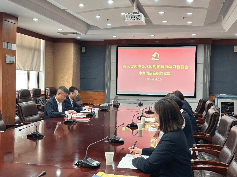 为深入贯彻落实党的关于全面从严治党的重要部署,切实将中央八项规定精神转化为酒店高质量发展的行动指南,中大酒店公司按照资产公司党委要求,于410日上午在职党支部全体党员召开深入贯彻中央八项规定精神学习教育会,系统学习中央八项规定精神,部署落实举措,明确各阶段性任务目标。