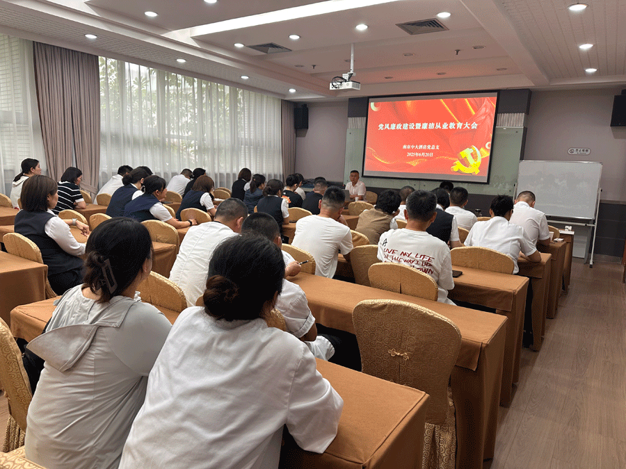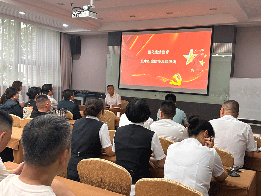 为深入贯彻落实全面从严治党要求,扎实推进党风廉政建设,2025年6月27日下午,南京中大酒店党总支在榴园宾馆第一会议室组织召开党员、主管以上管理干部及重点岗位工作人员廉洁从业教育专题大会。会议通过专题党课学习、观看警示教育视频、责任落实三重举措,强化廉洁从业意识,筑牢拒腐防变思想防线。公司总经理兼党总支书记庞晋伟参加会议并讲话。